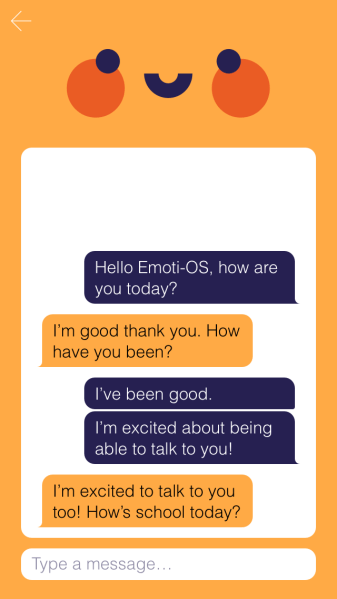 The purpose of the first iteration of Emoti-OS (13 Nov. – 19 Dec. 2017) was to determine the collective mood of Plymouth School of Creative Arts’s (UK) body of students by analysing the tone of their conversations with the chatbot, (a computer program that mimics conversation with people using artificial intelligence). It speculated whether a chatbot with a visual and emotionally driven character could engage and reflect the collective mood of a school in real time. Whilst doing so, could it also act as a channel for pupils and staff to express how they feel and see how others feel, in real-time, about their learning environment.